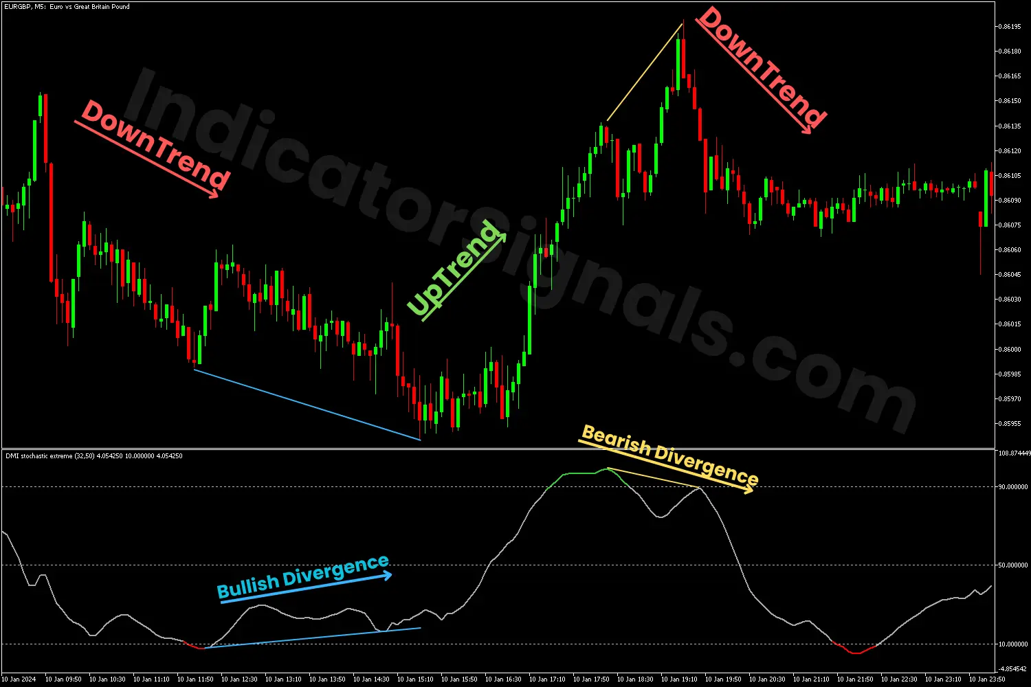 The DMI Stochastic Extreme Indicator offers a refined perspective on momentum by applying stochastic logic to directional movement rather than price. Its ability to identify overextended trends and divergence-based reversals makes it a must-have tool for traders.